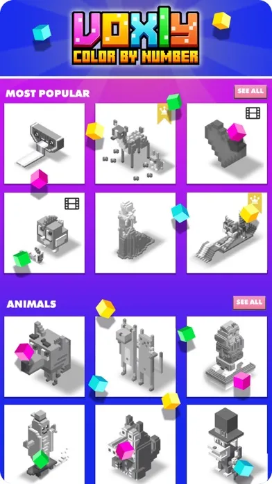 Explore a magical world full of fun and colors with Voxly Color by Number 3D! It's like a super cool game that helps you relax and be creative. You can color by number lots of cool pictures. Lots of people play this game, and you can show off your amazing creations to everyone in our awesome community!