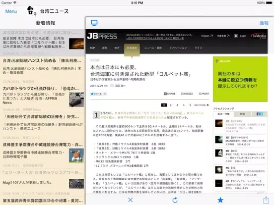 Zrzuty ekranu 台湾ニュース / 台湾情報だけをまとめ読み iPad