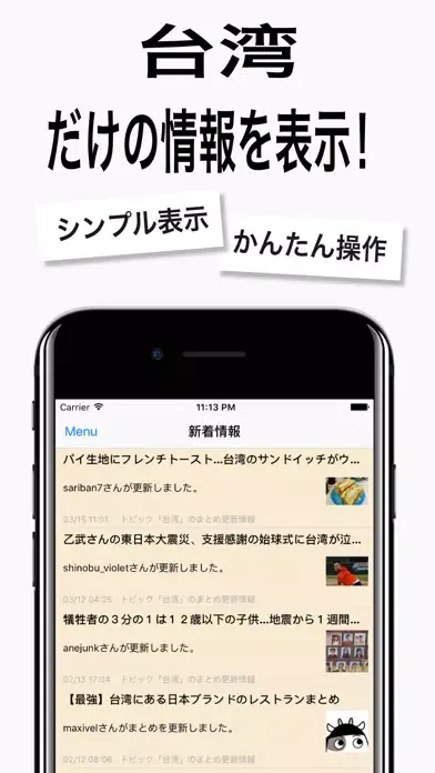 シンプルな表示で、他の雑音を気にせず台湾のニュースのみ閲覧できます。