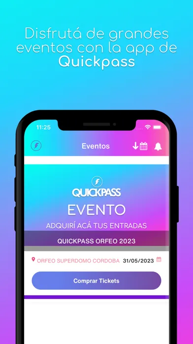 Quickpass se dedica a transformar la manera en que adquieres tus entradas y servicios adicionales para tus eventos favoritos. Desde el primer día, nos esforzamos por crear la mejor experiencia posible para el usuario. Nuestro enfoque principal es garantizar la máxima seguridad en todas tus transacciones, brindándote la tranquilidad de saber que tu acceso al evento es legítimo y completamente controlado. Además, buscamos agilizar el proceso de compra en el evento y ofrecerte nuevos beneficios para que aproveches al máximo tu experiencia.