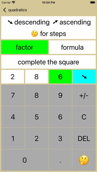 Coaching Calculators solve quadratic equations by :