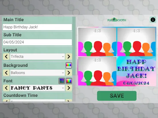 Fun2Booth is a photo booth application made for parties, events, weddings or just everyday use. Its easy to use interface is perfect for large events AND allows you to customize your photo and experience.