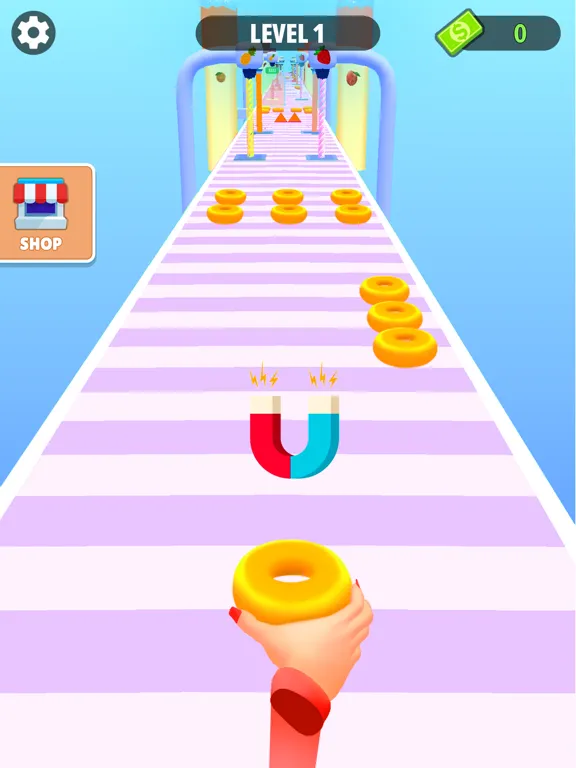 Reach the end and complete the donut run game.