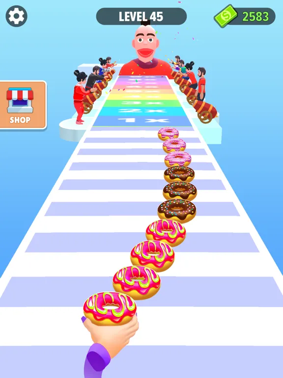 The only thing as good as eating donuts is making them! Are you ready to run and collect some sweet and tasty donuts in donut games? In this app, you get the chance to make up some delicious and colorful doughnut game. Doughnut Games will be eaten at the end of the goal in run race, the person who will eat reacts differently according to your donut maker. The person who will eat reacts differently. When you reach the goal, the longer your donuts, the more money you will get. A super fun doughnut stack and donut running game.