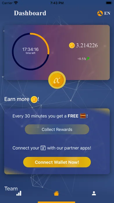 Alpha Network is a gamified experience that lets you mine Alpha with cloud mining rigs. Get started by creating an account and expand your team by connecting with your friends right from the dashboard.