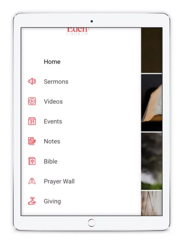 Capturas de tela do Eden Church App iPad