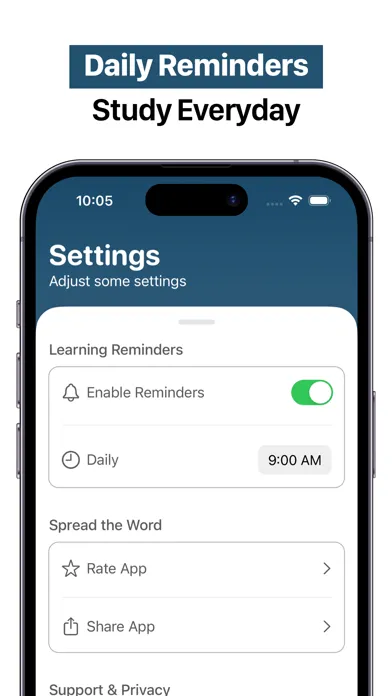 - Daily Reminders is a great helper for you so you don't miss a day studying for your exam