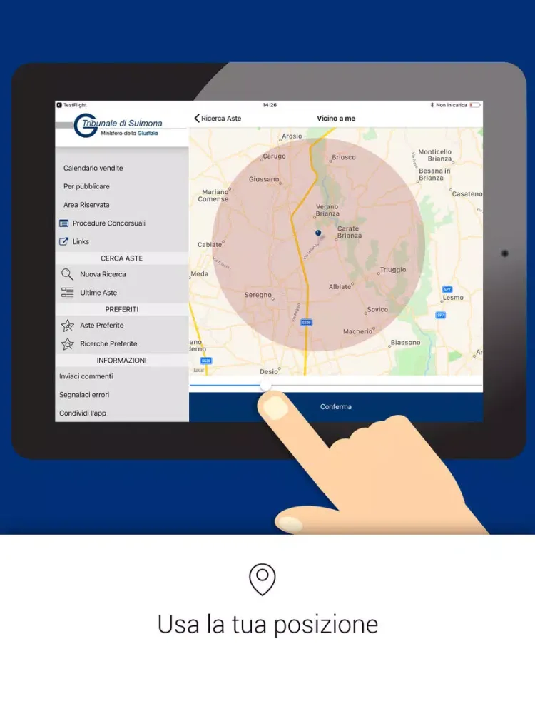 L'app ufficiale del Tribunale di Sulmona ti consente di consultare in tempo reale tutte le notizie pubblicate dall'ufficio giudiziario, reperire modulistica, consultare numeri telefonici e interagire con i servizi rivolti al cittadino. È possibile inoltre consultare le vendite giudiziarie del Tribunale e individuare immobili all'asta attraverso un potente motore di ricerca o semplicemente sfruttando il GPS del tuo smartphone.