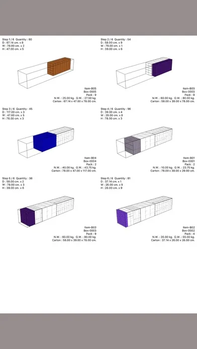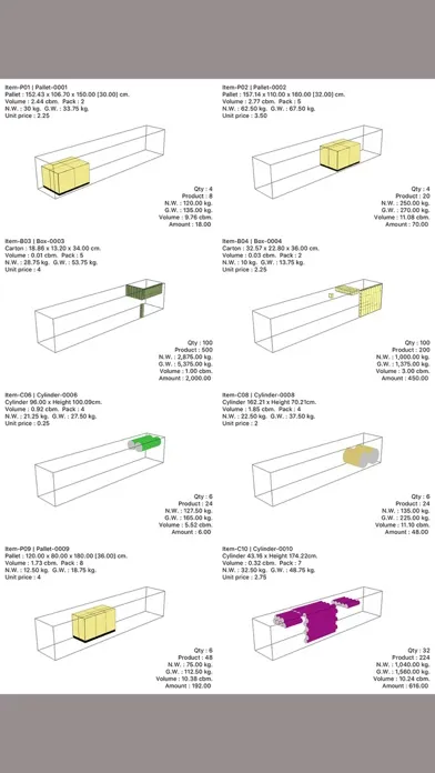 Simulate loading of your cargo in minutes, not hours or days! Maximize your shipping with boxes and container/truck/pallet and save money and time.