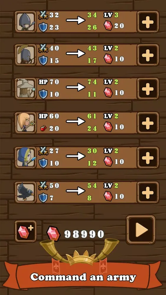 ◆There are a variety of roles in the army:warrior,archer,mage,priest,necromancer and eagle.