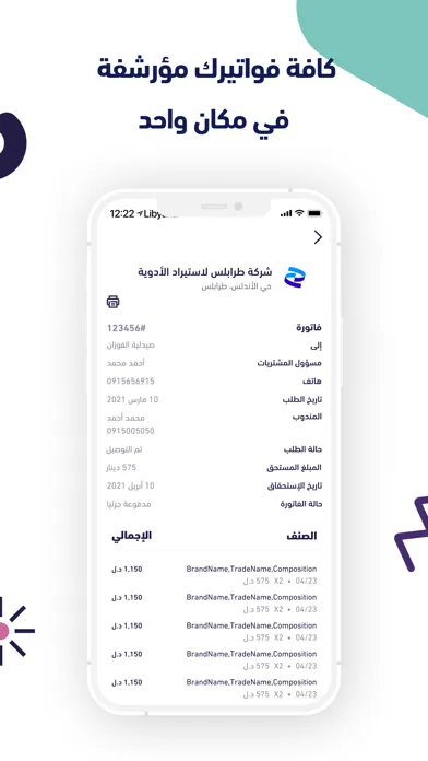 يقوم مسؤول المبيعات بإجراء طلباته اليومية بسهولة من أجل الصيدلية الخاصة به، والبحث عن جميع احتياجاته من الأدوية والمستلزمات الطبية وكذلك مستلزمات التجميل عبر الإنترنت من خلال تطبيقنا والذي يلعب دور شبكة ربط واسعة بين الصيدليات والشركات والموزعين في هذا المجال داخل ليبيا، كما يقوم المندوب التابع لكل شركة بتوصيل الطلبية إلى الصيدلية التي قامت بطلبها.