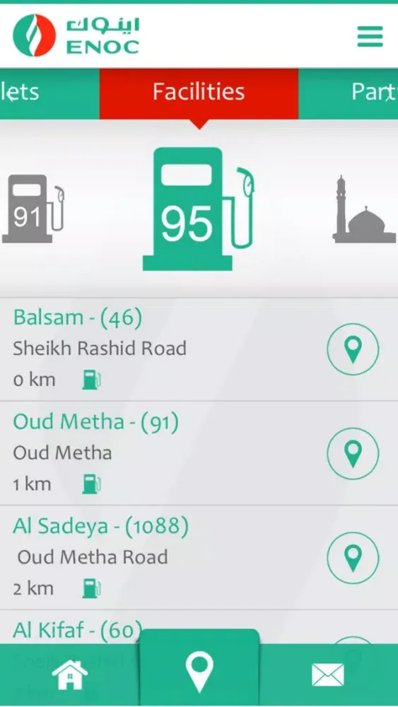 A search menu will enable you to find ENOC locations within the specified kilometer range and will allow you to be selective with your query results.
