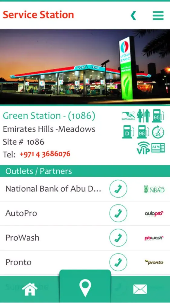 Download this interactive app to get comprehensive information and locations of all of ENOC’s service locations, companies and partners. The interactive station locator provides real time data, site information, GPS coordinates , directions, filters for various services offered and more. Find out who delivers near you and what their numbers are. At the touch of a button you can see a full screen of all the services and outlets at the ENOC/EPPCO sites. While on your journey this app shows your current location and enables you to choose the right ENOC location for your needs. Get to know which locations are 24/7 and which locations offer you the ability to pay your utility, credit card bills and more with ZBox.
