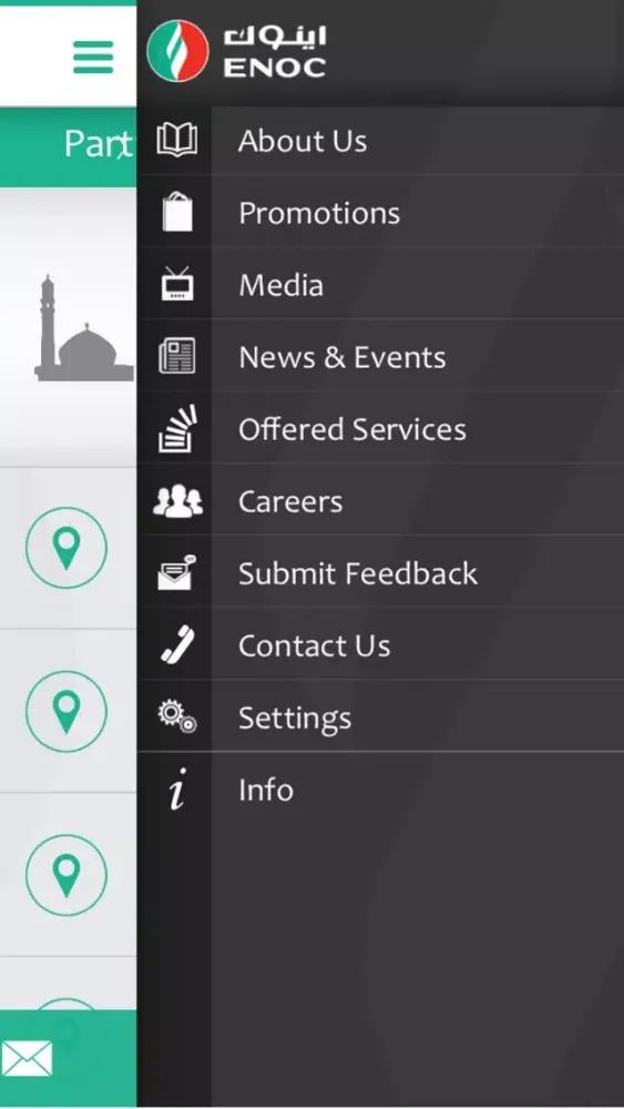 The app provides interactive information, but also static information explaining ENOC, its vision, mission and services and promotions that are currently ongoing.