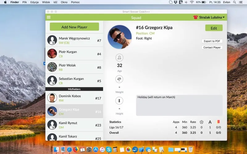 Besides basic info such as name, photo, preffered foot or contact info, you can set player’s technical, mental or physical attributes and edit them when your player makes progress.