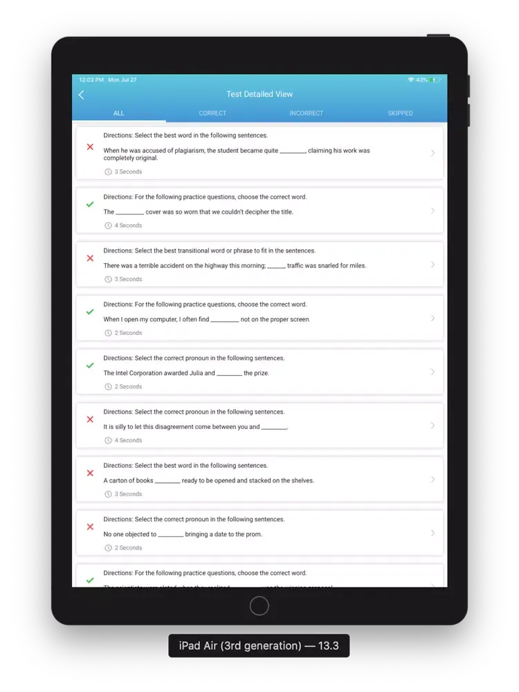 As you practice SAT questions on SAT Prep, the app tracks your performance and highlights your test strengths and weaknesses, helping you zero in on what you need to study in order to boost your SAT score.