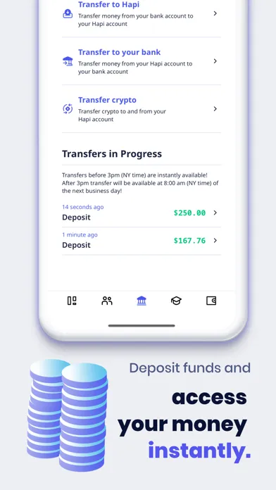 Join Hapi, easily transfer funds from your bank account and start investing in minutes, without paying maitenance fees.