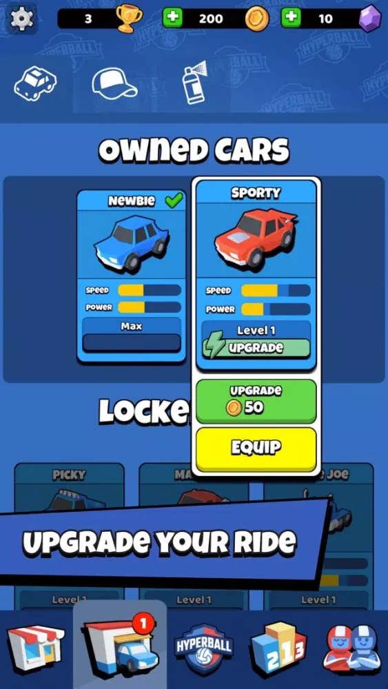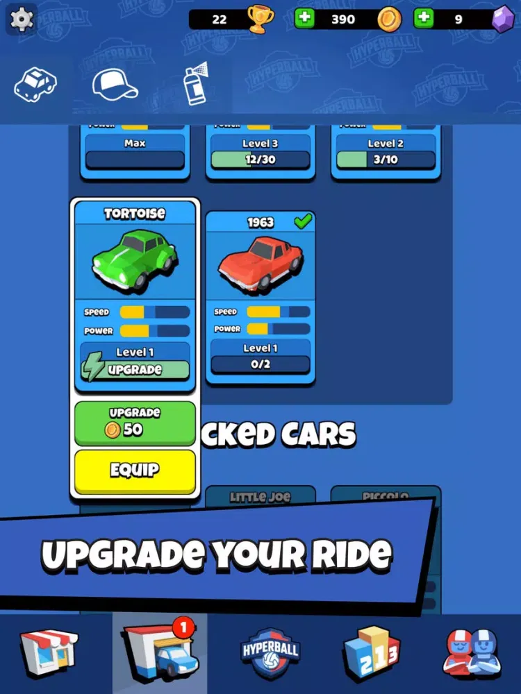 Defeat your opponents to unlock new cars, upgrades, and cosmetics for your cars.