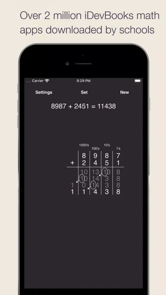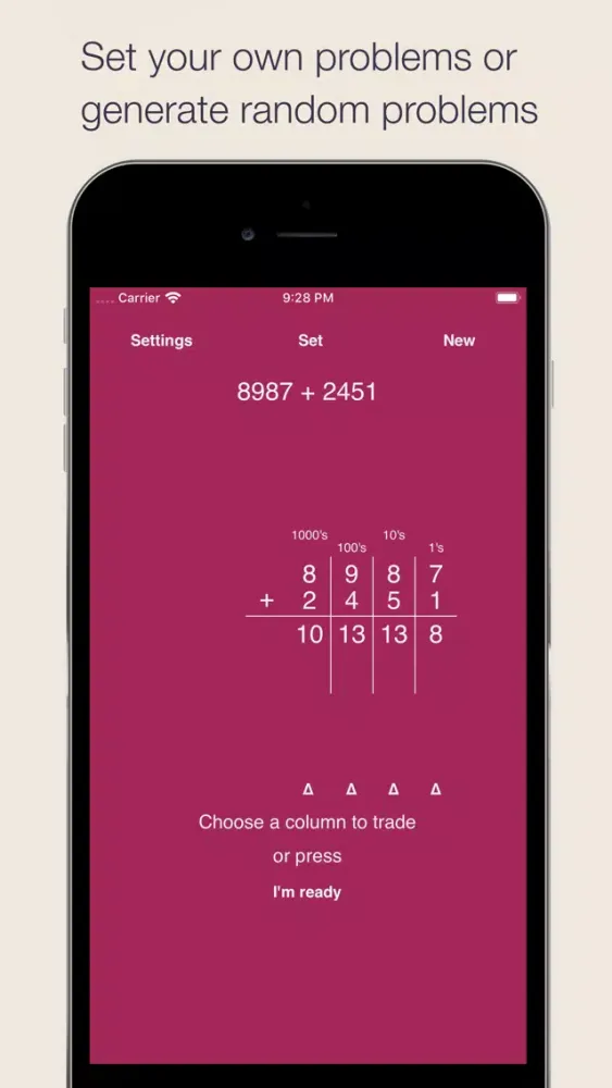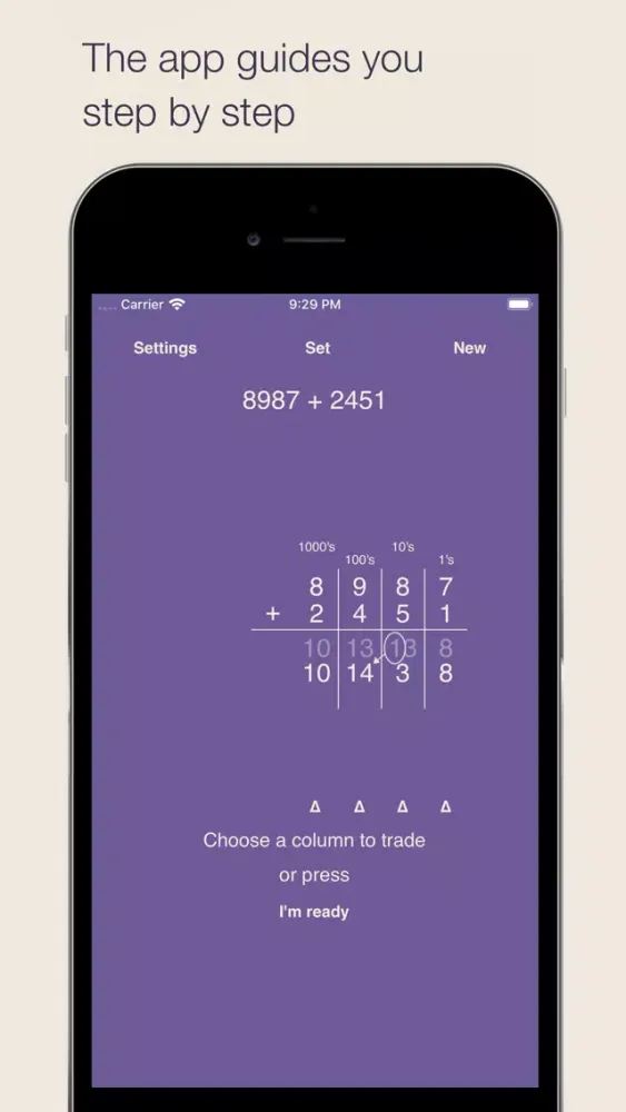 The numbers are aligned automatically so that you can concentrate on solving the operations for each column. Trading is animated step by step so you can see what happens.