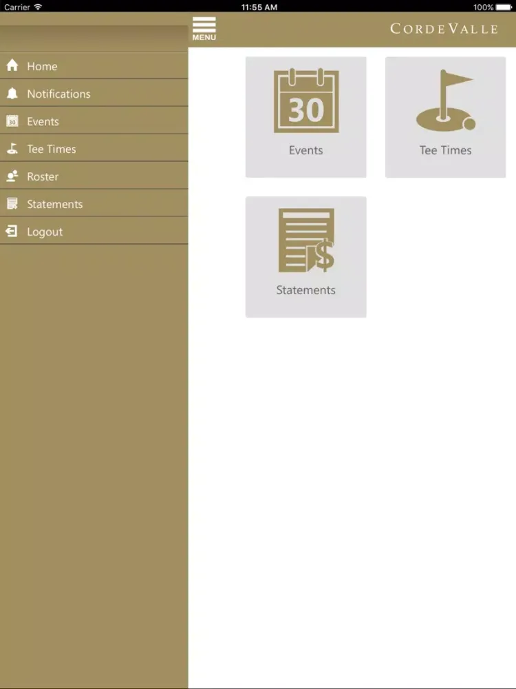Delivering the ability to connect the CordeValle Golf Club to your mobile device, the CordeValle Golf Club app provides members with the ability to view their Statements, register for Events and even book Tee Times. Use the Roster to connect with other members and receive notifications on upcoming club events, all by the way of your handheld or tablet.