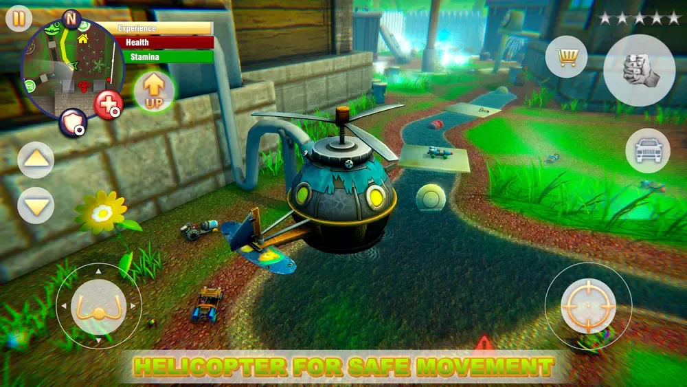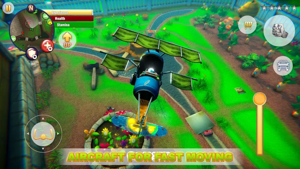 Aircraft - suitable for fast movement on the location, aircraft can help you to fight with clans that protect red mushrooms.