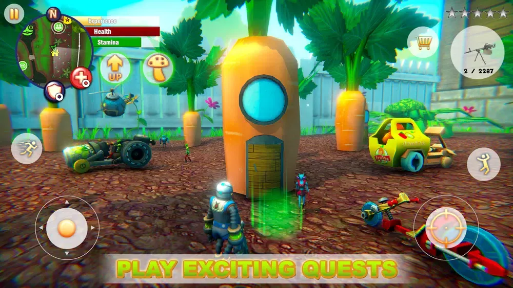 You will play for a funny bug, which has a protective suit. You will play various quests take part in battles for territory and you will fight with the main boss. Try your skills at this exciting game and become a winner on this small plot of land.