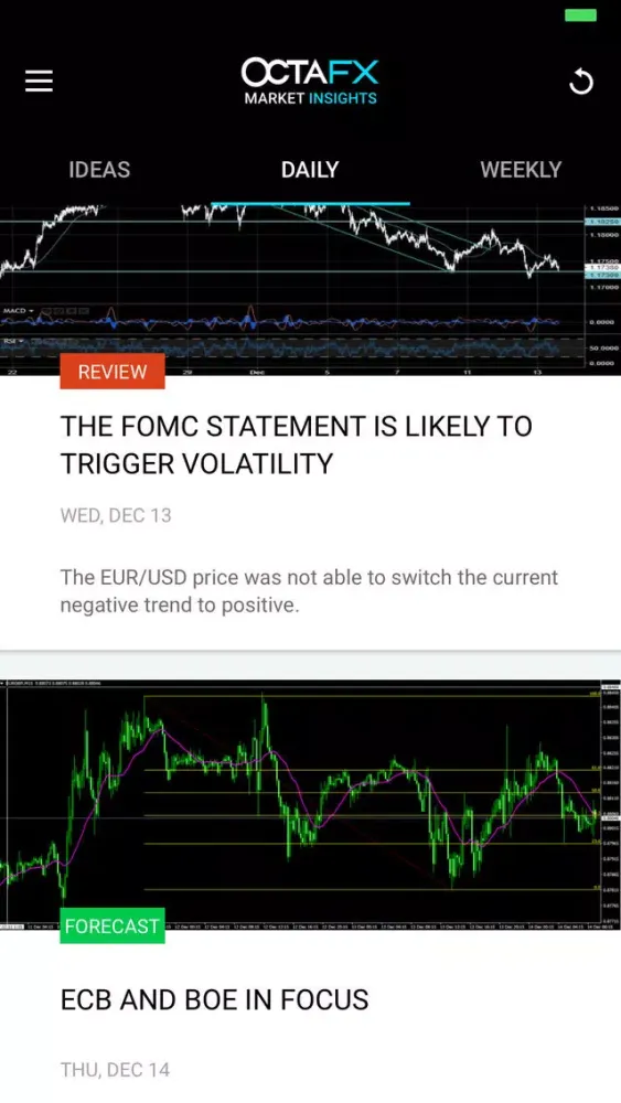 Daily and weekly market insights contain insightful Forex and CFD reviews as well as essential forecasts, which help you identify the most profitable times of the week and day.
