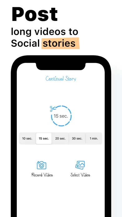 In Instagram Stories you can post videos only up to 15 seconds in length, Continual Story app helps by cutting long videos into 10 / 15 / 20 / 30 / 60 seconds clips so that you can upload them sequentially.