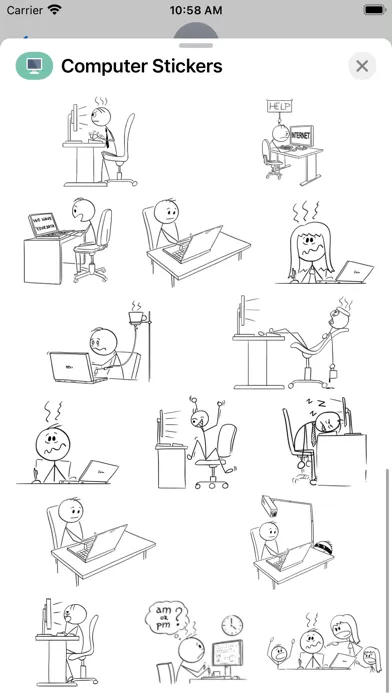 Set of 40 stickman computer stickers for your iMessage conversations.