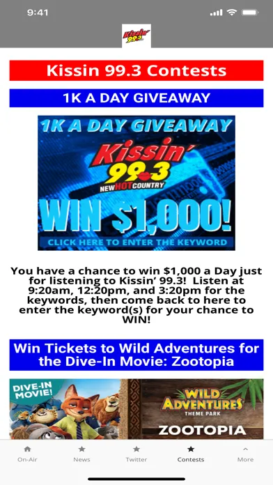 Capturas de tela do Kissin' 99.3