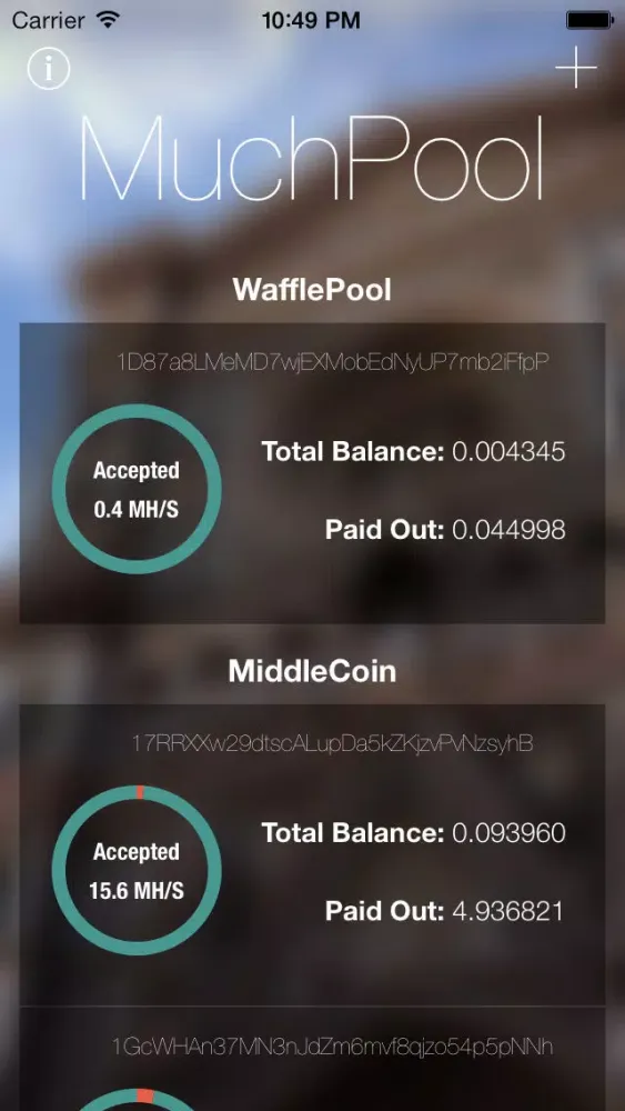 MuchPool is a cryptocurrency mining pool monitoring app that allows users to see the pool's stats such as balance, paid out, accepted and rejected hash rate. Currently MuchPool supports only Middlecoin, but more pool and features will be added in the future.