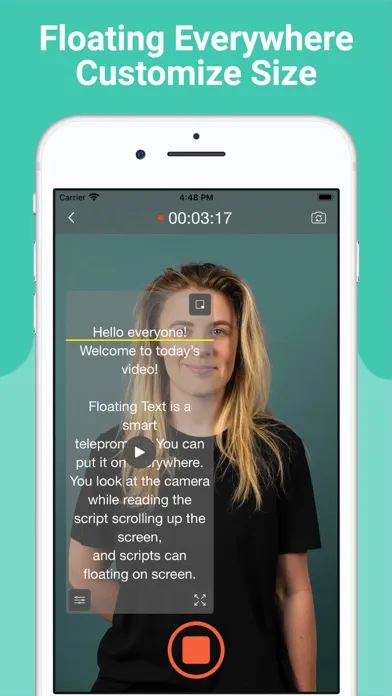 Floating Text is a Video studio pro in your pocket. It’s a teleprompter pro app to help you remember your lines while recording your video, helps you to read your script with a smart prompter and record a video clip from the front/back-facing camera at the same time, the teleprompter script scrolls next to the camera lens to ensure you are looking directly into the camera at all times..