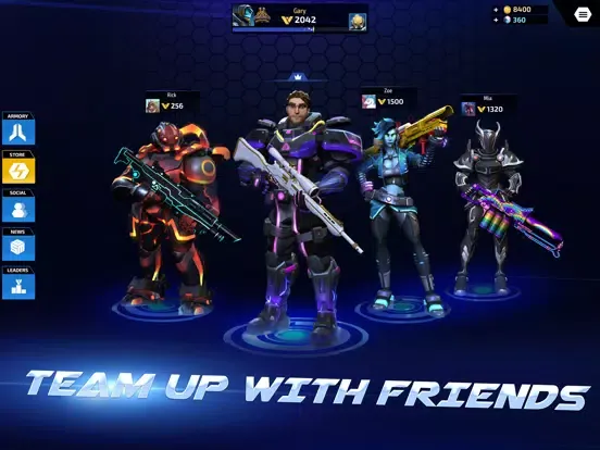 Create your own party or join a friend’s! Blaze through out of this world arenas together and fight contra teams! Team PvP combat at its best!
