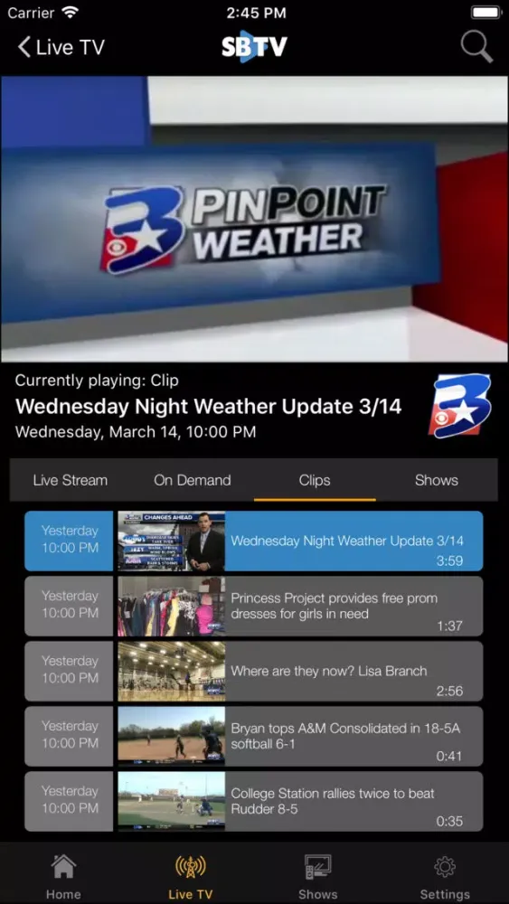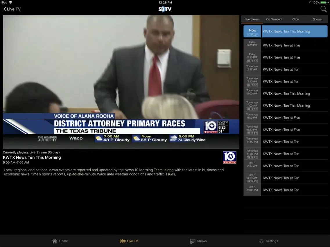 Watch your favorite TV stations with the SBTV app. SBTV provides access to local news, weather, and sports in addition to shows you can binge on – and it’s always free! With SBTV you can watch your favorite station live or choose to watch clips and programs that are available as previously aired content. In addition you can watch other programming from the SBTV platform.