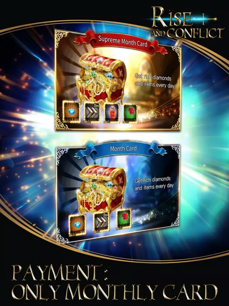 We offer 2 different subscription payment plans for Rise and Conflict: 1. Monthly card, 2. Premium monthly card. Both of them will be billed on a 30 day cycle what you must note that 1 month equals 30 days.