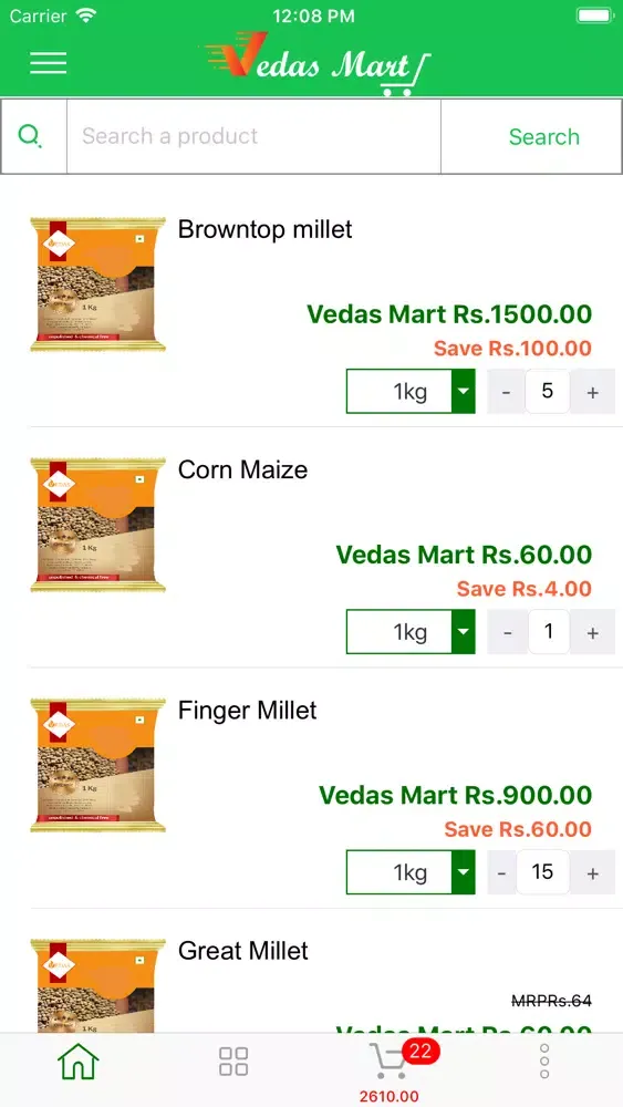 Vedas Mart is an online e-commerce application where the groceries can be purchased in online. Users no need to waste their valuable timings for traveling to shop and search for the product in the store and waiting for billing. through Vedas mart application we can select the product and can opt for deliver the products to our home address or also we can pickup the order at specified location and our convenient time.