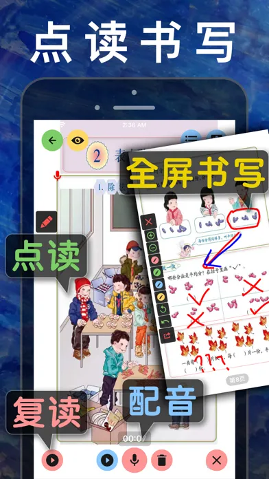 1、点读复读、全屏手写;