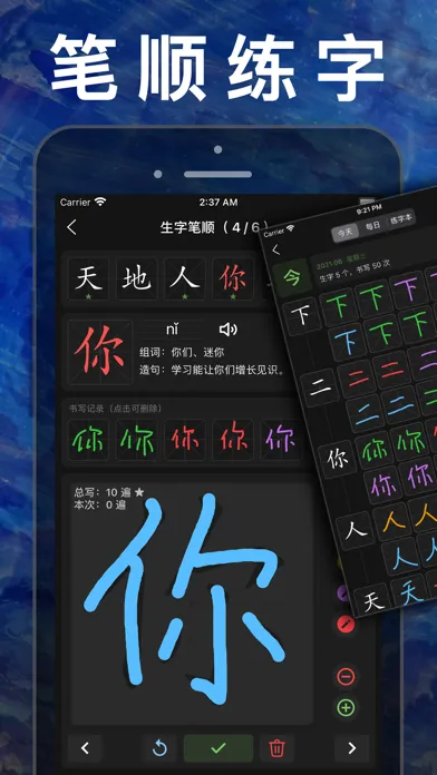 生字训练:手写板,拼音练习、笔顺笔画书写