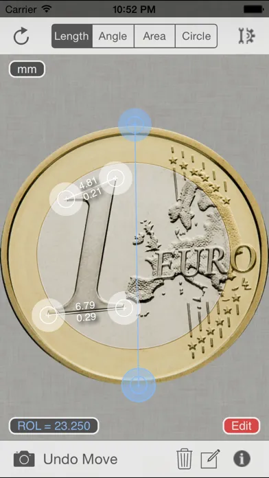 Two editing modes Edit and Zoom help the user to align the rulers or to mark an object accurately.