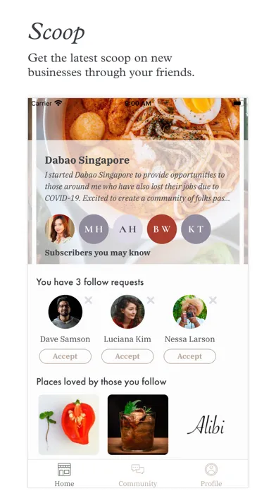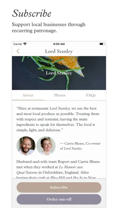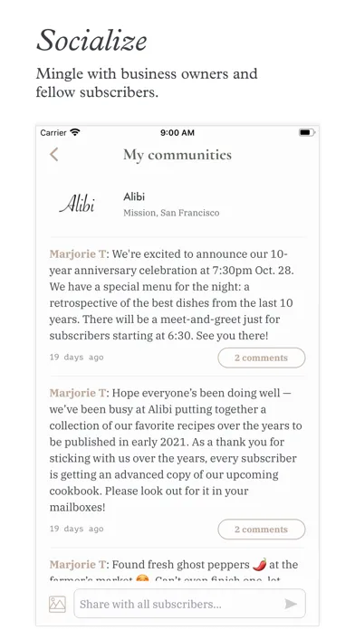 Discover and subscribe to neighborhood businesses through The Third Place. Mingle with fellow subscribers via a private chat group in addition to receiving products and perks.