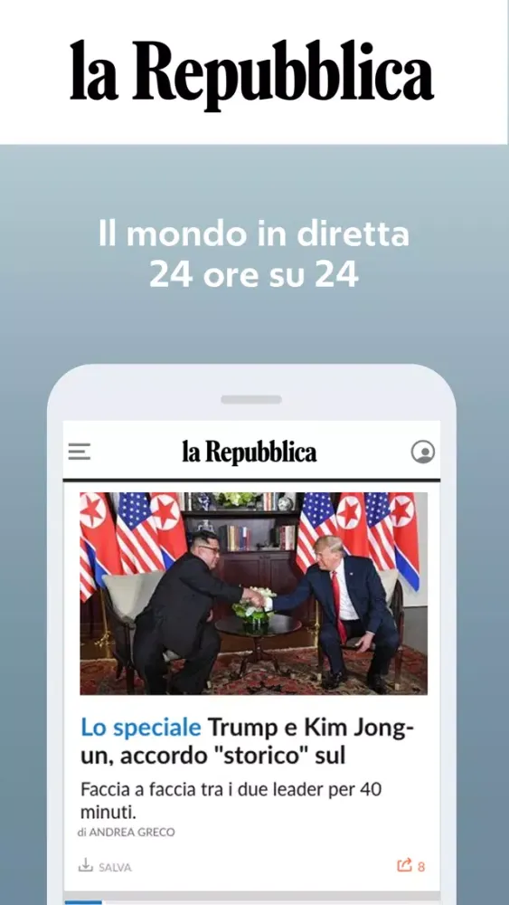 Gratis per te tutte le notizie di Repubblica, le dirette di sport, gli eventi degli spettacoli e molto altro ancora. E con le notifiche push sarai sicuro di non perdere mai un aggiornamento sugli argomenti di tuo interesse o una breaking news nel momento in cui accade.
