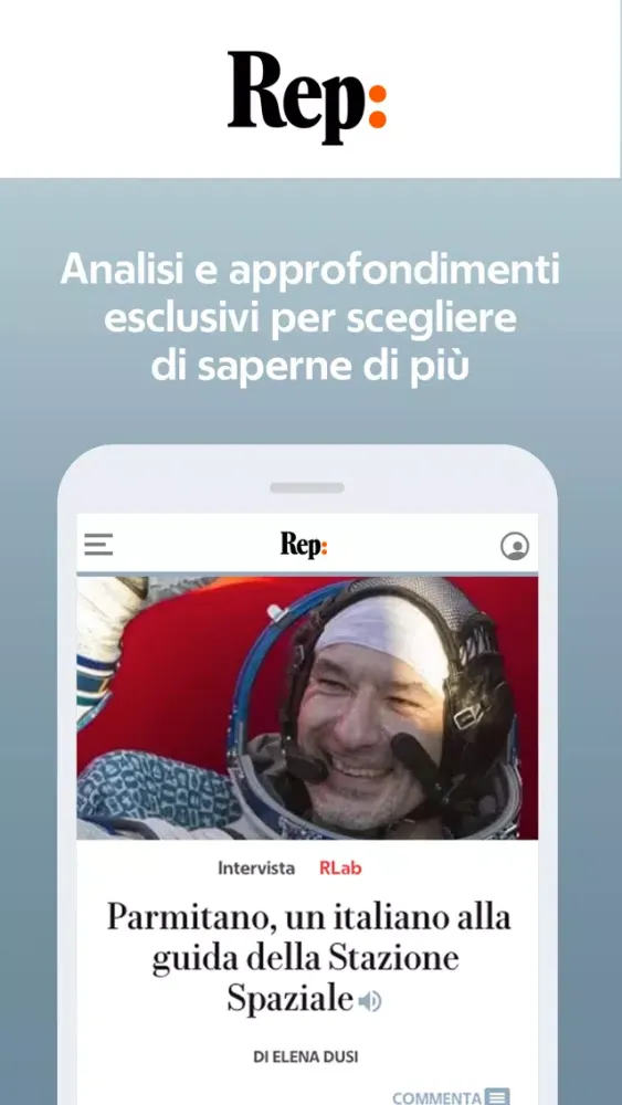 Troverai i contenuti di Rep:, il servizio in abbonamento dedicato all'approfondimento, con editoriali, analisi e reportage. Con la possibilità non solo di leggere, ma anche di ascoltare gli articoli disponibili in formato audio, per rendere più semplice l’accesso all'informazione di qualità anche quando sei in macchina o stai facendo sport.