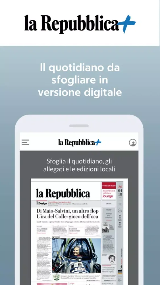 Infine avrai accesso alla prima pagina del quotidiano con Repubblica+