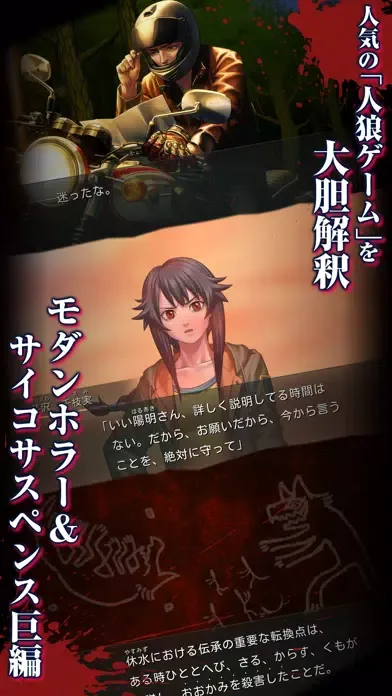 近年その人気を不動のものとしつつある「人狼ゲーム(汝は人狼なりや?)」を、「鈍色のバタフライ」「トガビトノセンリツ」「D.M.L.C.-デスマッチラブコメ-」のシナリオライターが、不気味&リアルにアレンジ! 現代日本で奇習を保つ山間の集落で展開される不気味な信仰と、「黄泉忌みの宴」と呼ばれる殺人儀式に、バイク旅行者・房石陽明(ふさいしはるあき)が挑みます。