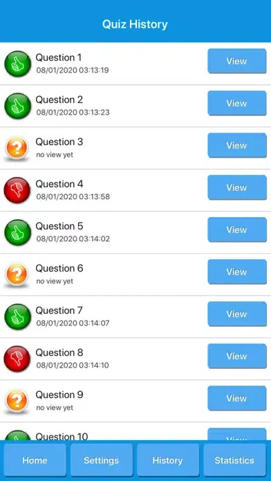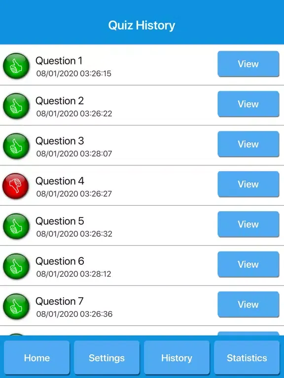 - Review answered questions on history screen.