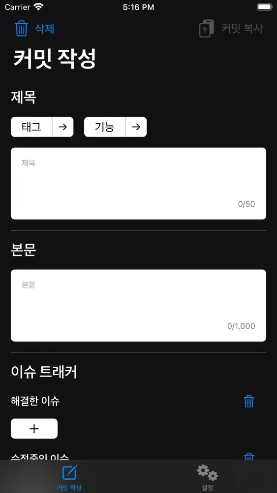 이슈 선택 - 커밋 복사 시 이슈를 자동으로 닫을 수 있습니다