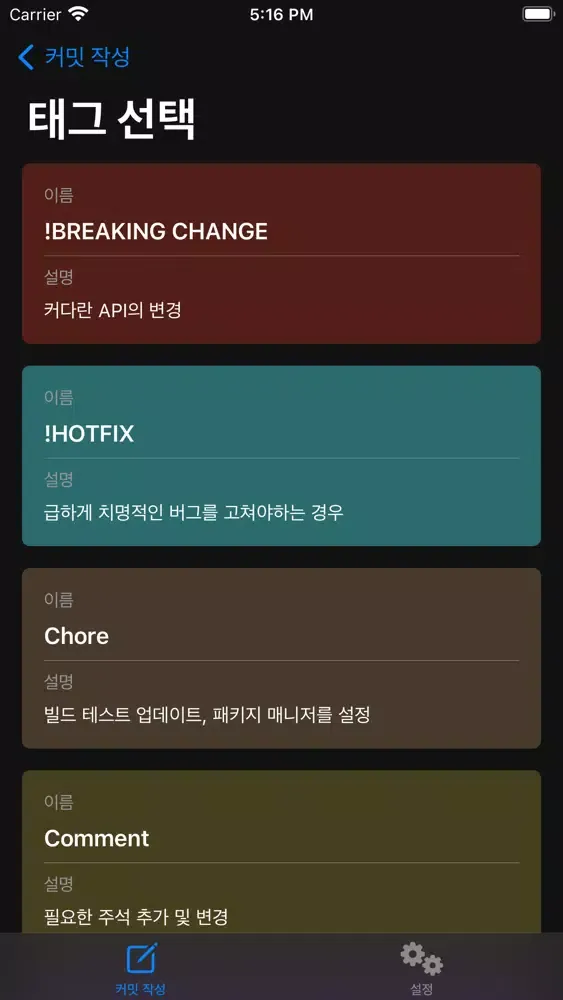 커밋 작성 - Udacity 커밋 컨벤션을 따라 태그를 선택해서 커밋 메시지를 작성합니다.