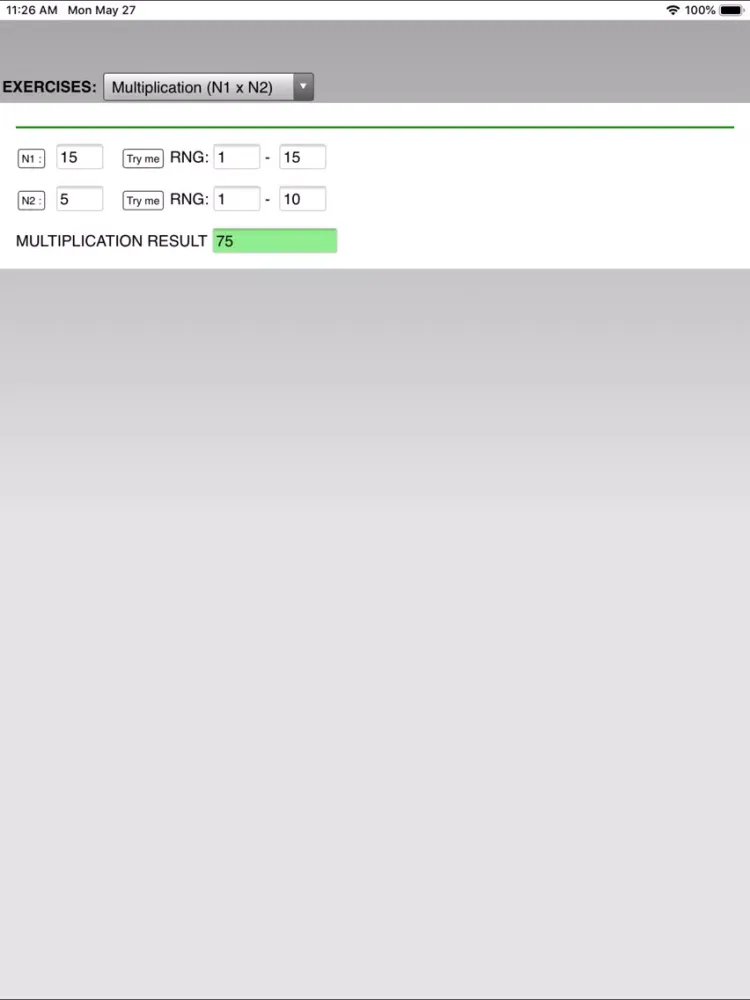 Capturas de tela do Mental Math iPad