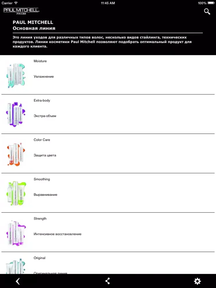 Capturas de tela do Мобильный каталог Paul Mitchell