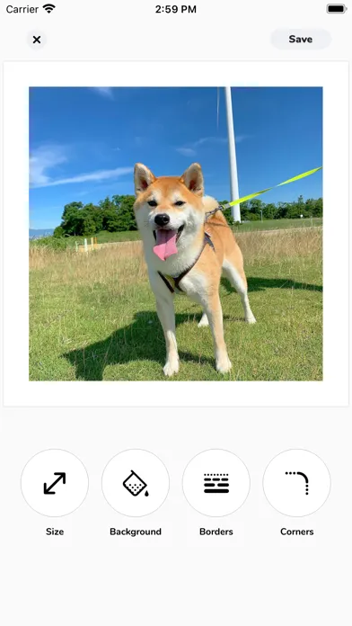 - Choose between 3 different frame sizes: square, portrait or stories.